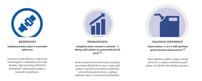MICHELIN X CRANE 2 představuje novou generaci pneumatik navržených speciálně pro náročný provoz mobilních a terénních jeřábů. Kombinuje vysokou nosnost, bezpečný brzdný výkon a dlouhodobě stabilní přilnavost, čímž pomáhá maximalizovat produktivitu techniky a optimalizovat provozní náklady.